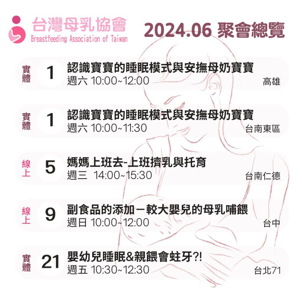 報名網址:台南市母乳支持聚會(在line社群內公布Google Meet連結)