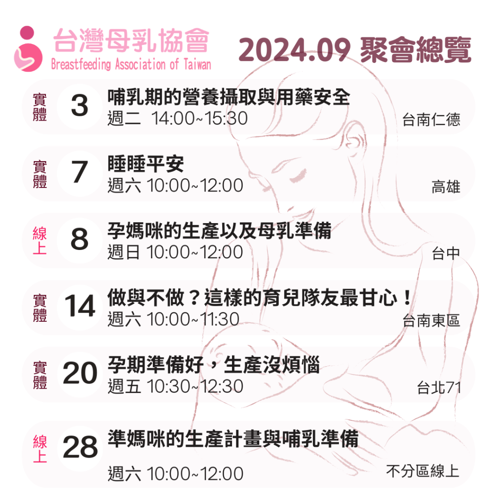 報名網址:台中市母乳支持聚會(有報名才能傳送線上聚會連結喔!)