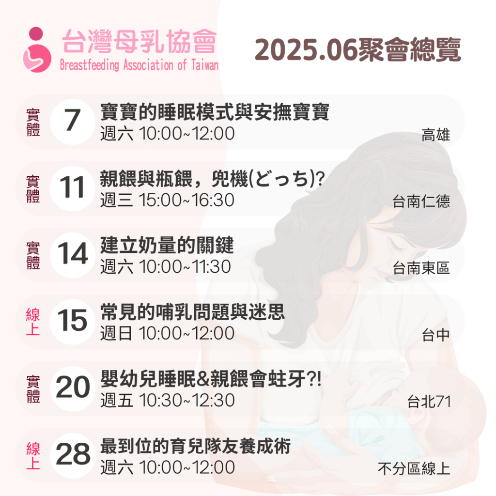 報名網址:台中市母乳支持聚會(有報名才能傳送線上聚會連結喔!)
