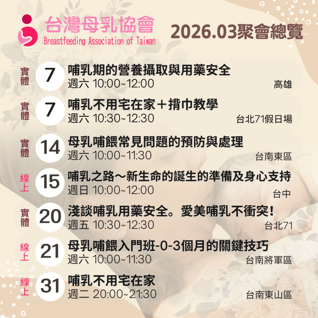 報名網址:台南市母乳支持聚會(有報名才能傳送線上聚會連結喔!)
